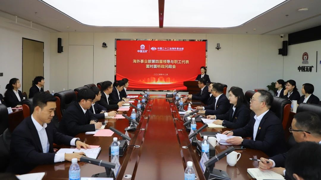 12月28日,海外事業(yè)部召開第四屆領(lǐng)導(dǎo)與職工代表面對面聽政問政會。海外事業(yè)部總經(jīng)理、黨委副書記郭孔松代表領(lǐng)導(dǎo)班子通報(bào)2023年工作目標(biāo)任務(wù)完成情況及取得成效。